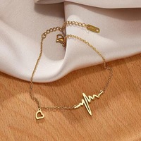 18K altın kaplama romantik aşk kalp elektrokardiyogram darbe Charm kolye bilezik paslanmaz çelik kalp atışı kadınlar bilezik